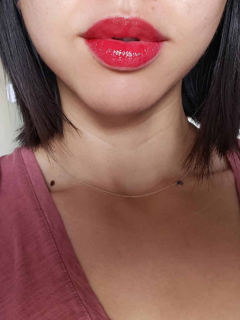 I did find the darkest shade, 490 to apply a lot more patchy. This is pretty typical of most liquid lipsticks I’ve tried, so I would probably apply a dark lip liner underneath to make it look more even.
