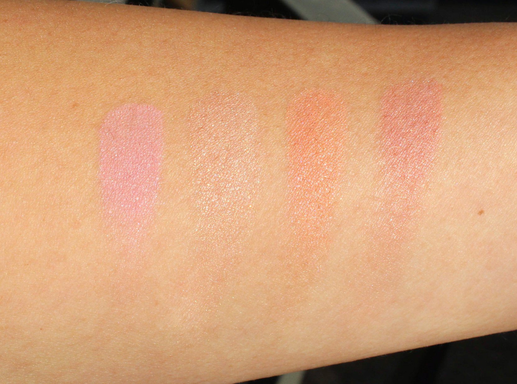 Again, since they swatch more softly, it’s hard to see how they would show up on the face, but all shades are quite pigmented on my face, while Brilliant Nude just gives me the most subtle glow.