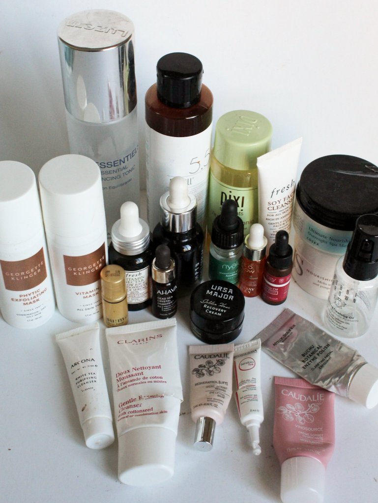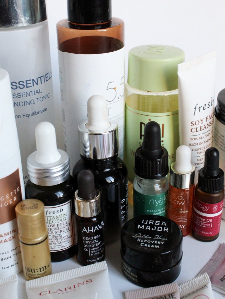 For cleansers, I used up the Erno Laszlo Pore Refining Detox Double Cleanser (gifted), which has little capsules of charcoal to help detox and clarify pores. I really loved this as my second cleanse and really felt like it did a good job cleansing my skin. I would consider repurchasing this! I use travel size cleansers for my gym routine because the smaller tubes are easier to squeeze into a small shower bag. The Arcona White Tea Purifying Cleanser smelled nice but was a fairly standard gel cleanser that didn’t stand out to me. The Clarins Gentle Foaming Cleanser actually felt really nice and didn’t leave a weird film like some foam cleansers do, plus it didn’t feel stripping or drying, like other foam cleansers can. One of my favorite cleansers is the Fresh Soy Face Cleanser, which is just a really nice gentle and effective moisturizer. I already have a couple backups of this ready to go.
