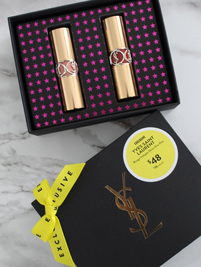 YSL makes some of my favorite lip formulas, and the Rouge Volupte Shine formula is a great option if you want a glossy lipstick that still has some staying power. I was excited to see this set featuring two full-sized lipsticks for $48, since each lipstick retails for $38. I already own 3 shades of this lipstik and I’m happy to add 2 more to the collection. The shades included are: 09 Nude Sheer, a rosy beige shade, and 80 Chili Tunique, a brick red shade. Both of these shades are right up my alley so they’ll fit into my existing collection perfectly.