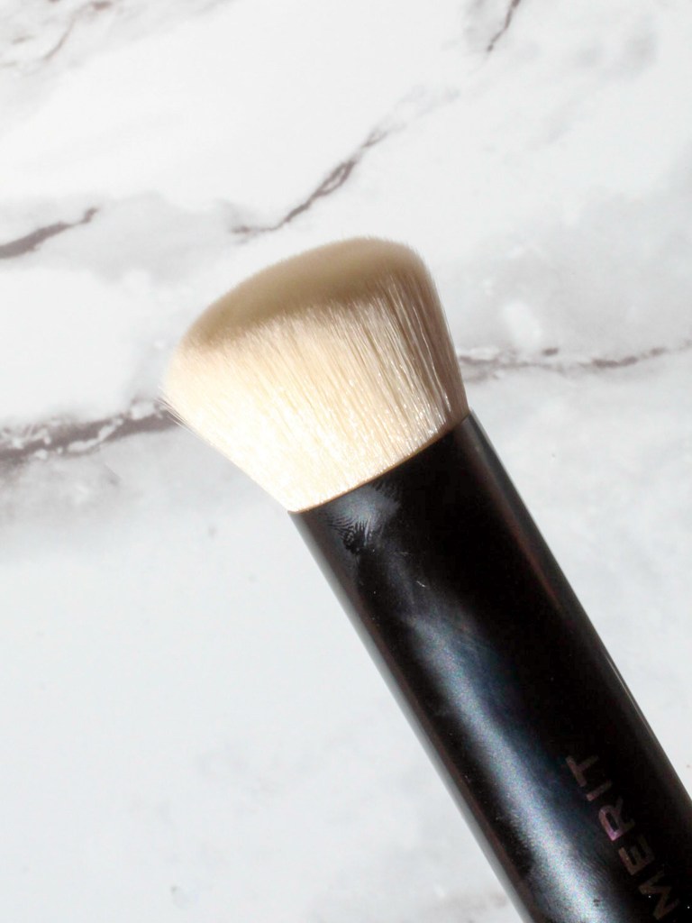 This is a dense kabuki brush that has a slight taper. This was designed to work with the Complexion Stick, which I’ve tried once or twice with a sample of the product. It works well to blend out stick or cream complexion products, but my favorite Merit product to use this with is actually the Flush Balms. I find that the denseness of this brush helps to build up the pigment in what is otherwise a pretty sheer blush formula, and really blends out the product effortlessly.