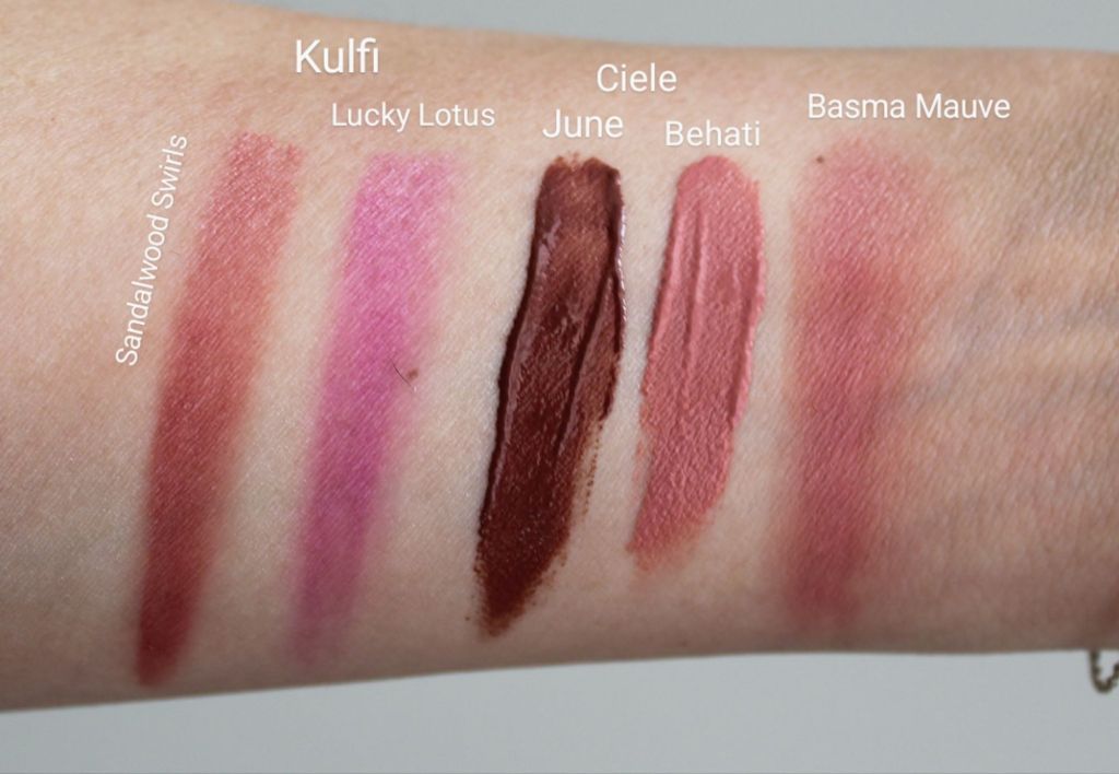 - Kulfi Mehndi Longwear Radiant Cream Blush – I just recently tried this, and find this to be a really easy liquid blush to work with. It has a thicker consistency so it’s almost a cream finish, which makes it blend out really well into a soft matte finish. A little bit goes a long way, so I just dab a tiny dot of product to get a sheer wash of color. I have the shades Lucky Lotus, a purple berry shade that is so beautiful on olive skintones, and Sandalwood Swirls, a terracotta mauvey type of shade.
