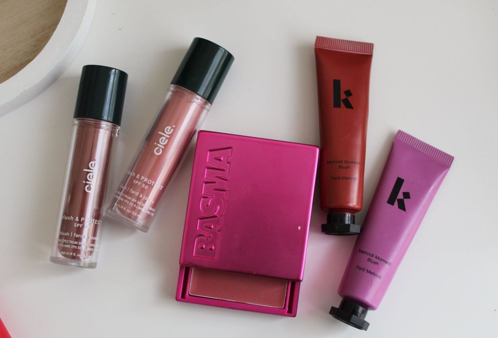 - Ciele Blush and Protect SPF 50 Blush – these liquid blushes are a fantastic everyday blush that are easy to apply for a super natural looking tint. The wear time is not quite as long as the Basma blushes, and I get about 6 hours out of these, but I love the subtle look that they give. It gives off duty effortless model vibes, and I often wear these when I’m wearing more minimal makeup. I have the shades Behati, a muted neutral pink, and June, the perfect deep bronzish burgundy that is perfect as a blonzer.