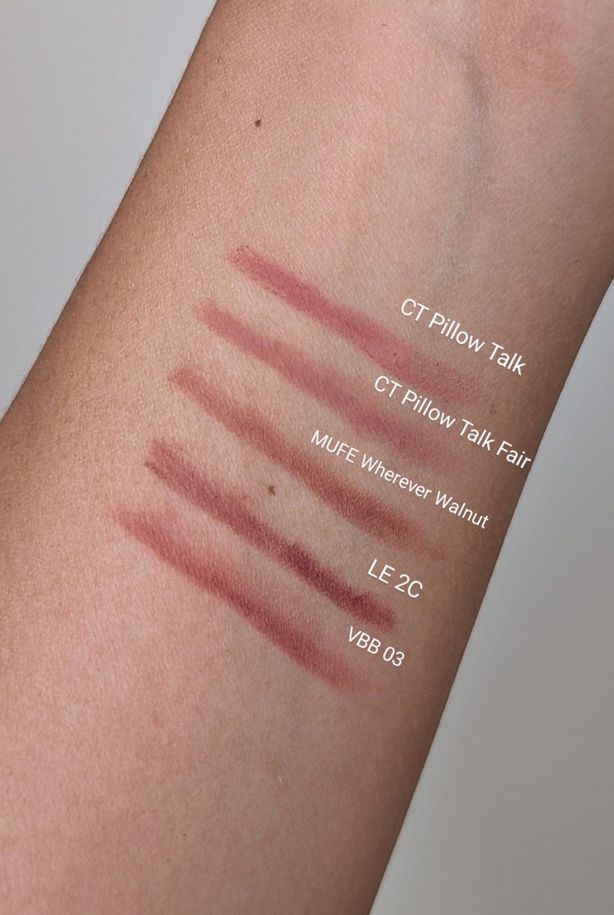 1. always here for a lip liner deep dive! I feel like lip liners are where I started to truly understand things like undertone and saturation/desaturation in a way that actually helps me do my makeup better. Pillowtalk is by far my most used over the last 5 years, even though I like other formulas a tiny bit better. LE 1C is giving it a run for its money, though, and VB2 is my go to for more dramatic looks because it ends up looking good but nothing like my actual lips. Iconic Nude makes me look dead and gray, but on my wife it looks PERFECT, like she can just keep layering on more and it never looks weird because the colors are so native to her face. (I am not confident in describing the difference in our undertones but I think I am more peach warm/neutral while she has more yellow verging on olive… and I’m probably a “bright spring” in terms of needing saturation.) I really wish any of the Pat McGrath colors spoke to me because I would love to have a longest wearing option, but I actually think the pinkier Chanel liner will be my next purchase.