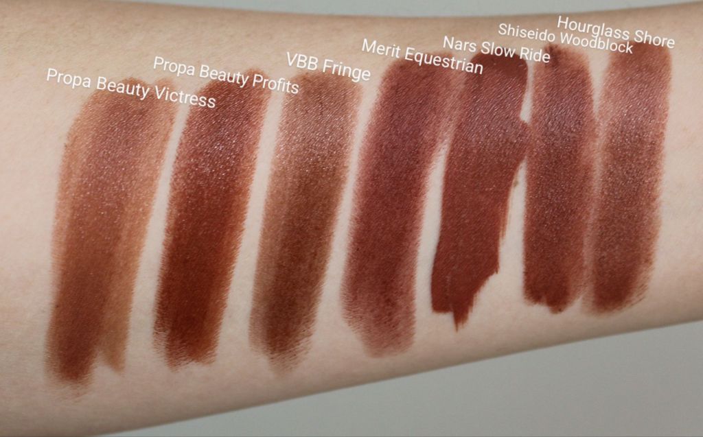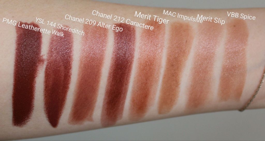 I generally find this category to be the most wearable shades of brown, since they can mesh well with the natural pink in my lips.