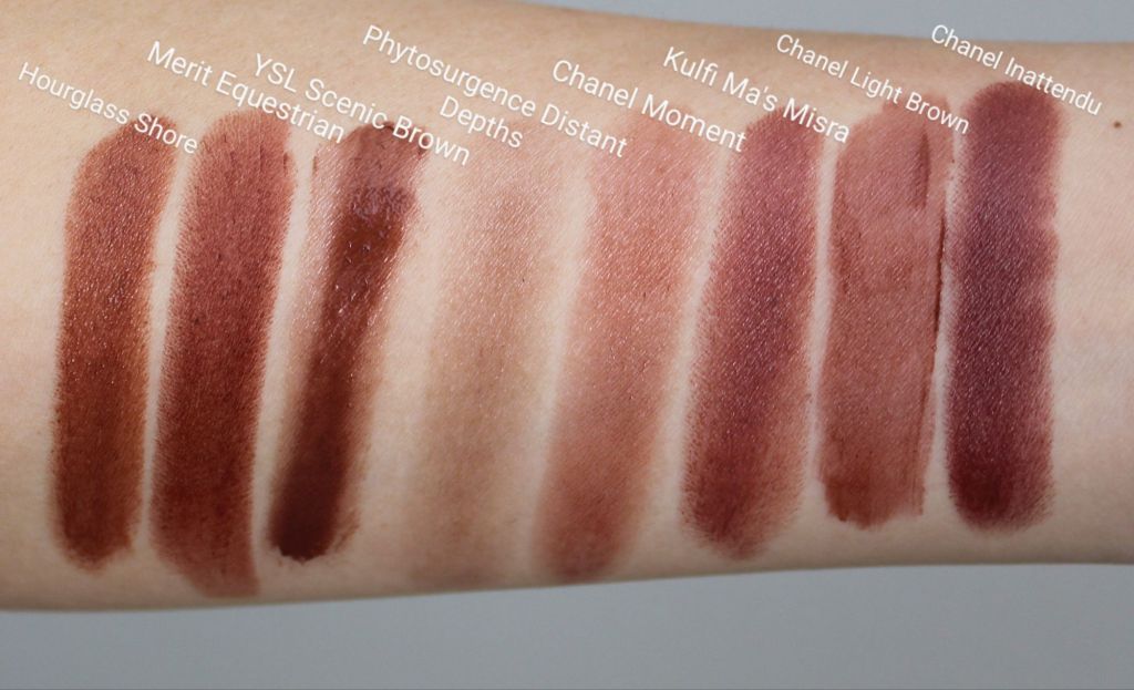 Cool brown lipsticks have a much more heavy infusion of black or gray, and since too much gray can make me look dull, I don’t tend to gravitate towards any truly cool brown lipsticks.